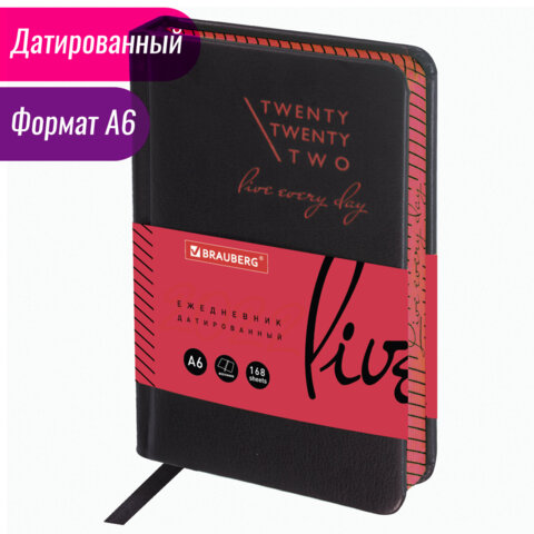 Ежедневник датированный 2022 МАЛЫЙ ФОРМАТ 100х150 мм А6, BRAUBERG 'Chameleon', под кожу, черный/крас
