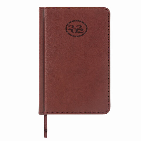 Ежедневник датированный 2022 МАЛЫЙ ФОРМАТ 100х150 мм А6, BRAUBERG 'Favorite', под кожу, коричневый,