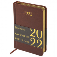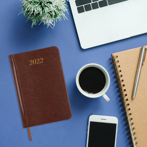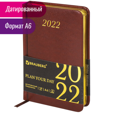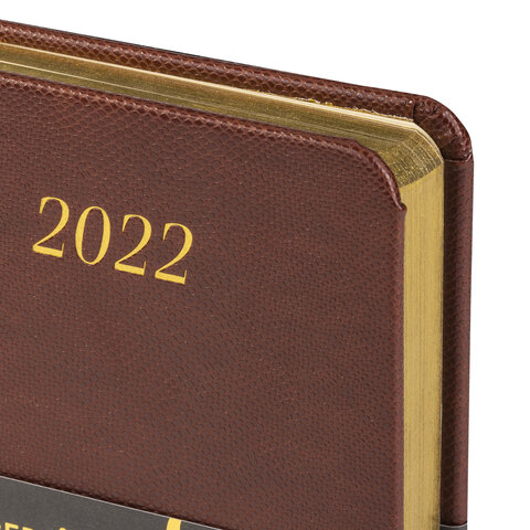 Ежедневник датированный 2022 МАЛЫЙ ФОРМАТ 100х150 мм А6, BRAUBERG 'Iguana', под кожу, коричневый, 11