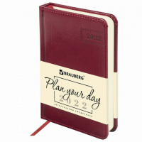 Ежедневник датированный 2022 МАЛЫЙ ФОРМАТ 100х150 мм А6, BRAUBERG 'Imperial', под кожу, бордовый, 11