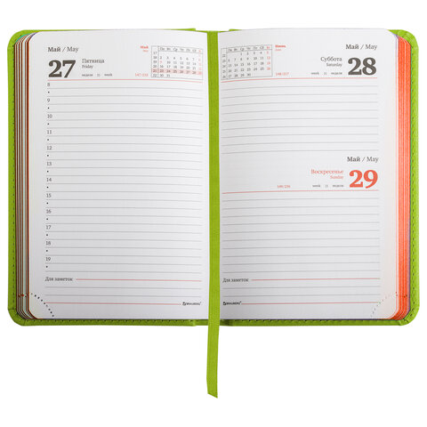 Ежедневник датированный 2022 МАЛЫЙ ФОРМАТ 100х150 мм А6, BRAUBERG 'Rainbow', под кожу, зеленый, 1129