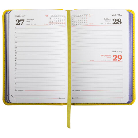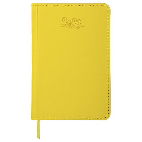 Ежедневник датированный 2022 МАЛЫЙ ФОРМАТ 100х150 мм А6, BRAUBERG 'Rainbow', под кожу, желтый, 11292