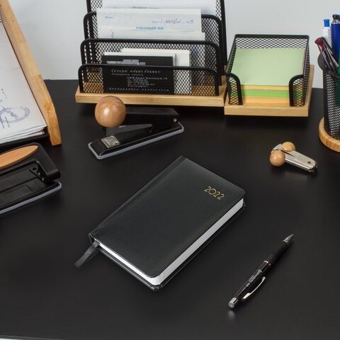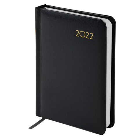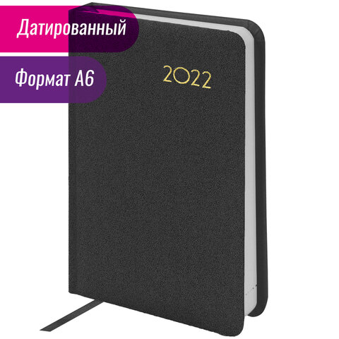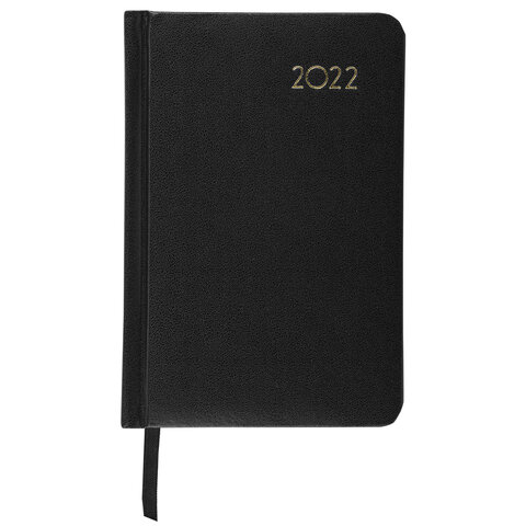 Ежедневник датированный 2022 МАЛЫЙ ФОРМАТ 100х150 мм А6, BRAUBERG 'Select', балакрон, черный, 112925