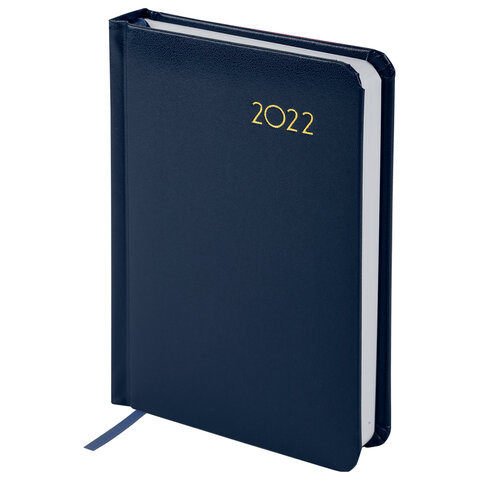 Ежедневник датированный 2022 МАЛЫЙ ФОРМАТ 100х150 мм А6, BRAUBERG 'Select', балакрон, темно-синий, 1