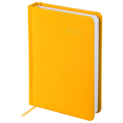 Ежедневник датированный 2022 МАЛЫЙ ФОРМАТ 100х150 мм А6, BRAUBERG 'Select', балакрон, желтый, 112926