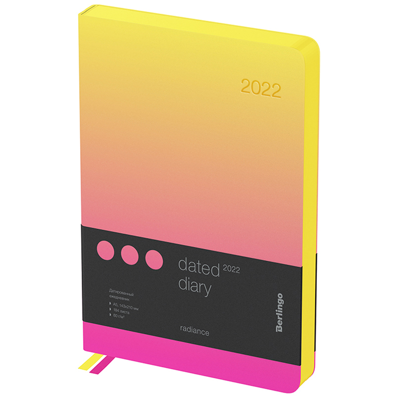 Ежедневник датированный 2022г., A5, 184л., кожзам, Berlingo 'Radiance', розовый/желтый градиент