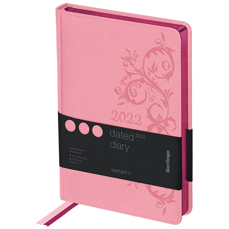 Ежедневник датированный 2022г., А5, 184л., кожзам, Berlingo 'Starlight S', металлик срез, розовый