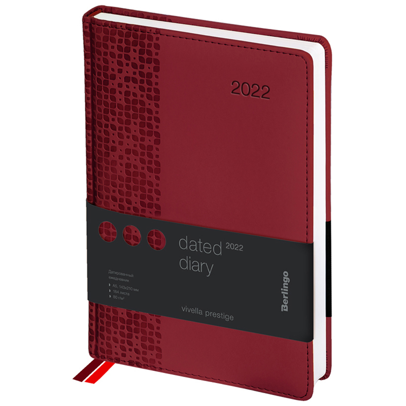 Ежедневник датированный 2022г., А5, 184л., кожзам, Berlingo 'Vivella Prestige', бордовый
