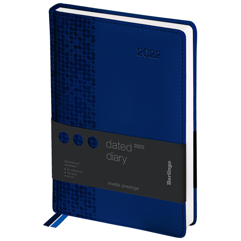 Ежедневник датированный 2022г., А5, 184л., кожзам, Berlingo 'Vivella Prestige', синий