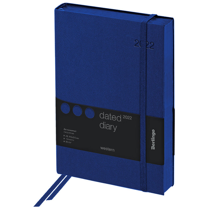 Ежедневник датированный 2022г., A5, 184л., кожзам, Berlingo 'Western', синий, с резинкой