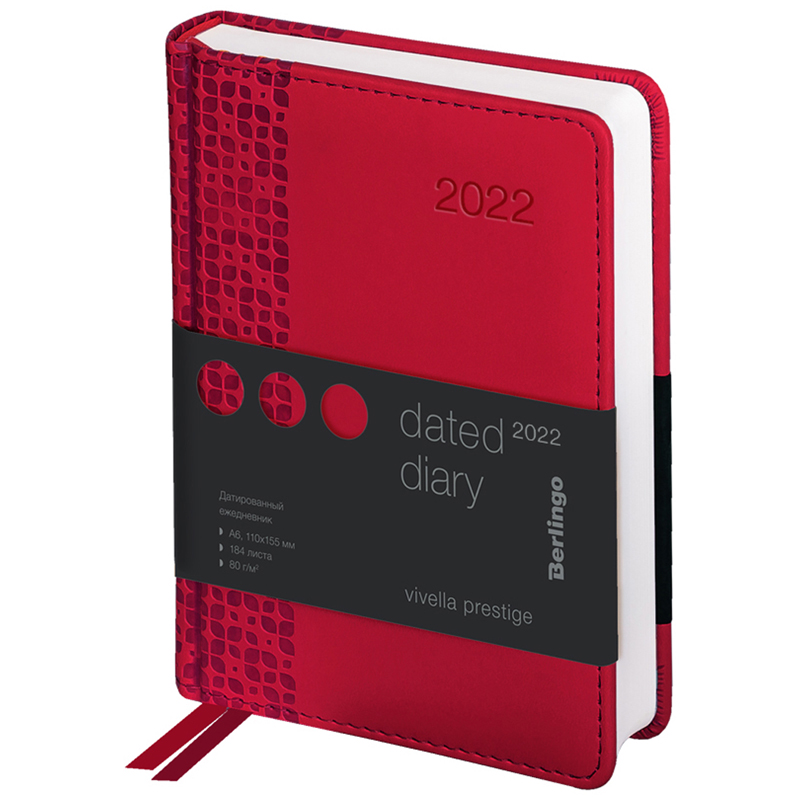 Стильный датированный ежедневник на 2022г. Berlingo Vivella Prestige формата A6 (110*155 мм) с классической твердой матовой обложкой из высококачественной экокожи. Цвет - красный. Имиджевое тиснение на обложке добавляет интересную деталь в насыщенной цвет обложки. Внутренний блок состоит из 184 листов высококачественной белой бумаги повышенной плотности 80 г/м? с пантонной печатью в 2 краски. Перфорированные уголки, справочная информация и 2 закладки-ляссе сделают использование ежедневника Berlingo Vivella Prestige комфортным. Внутри располагаются географическая карта, отрывные заметки, бланки извещения о ДТП и справочные материалы. 3 комплекта стикеров станут приятным подарком. Подходит под персонализацию.