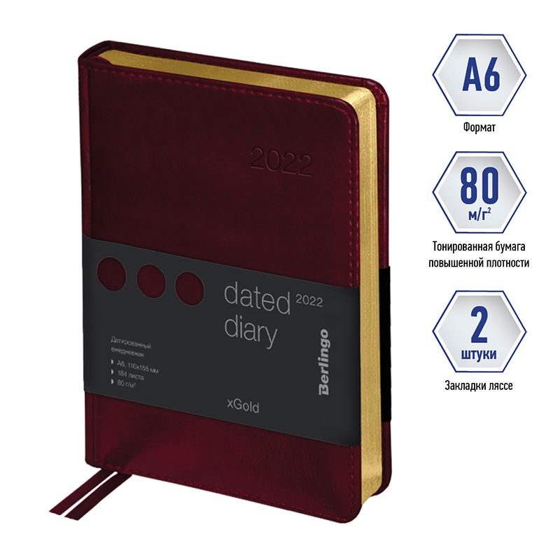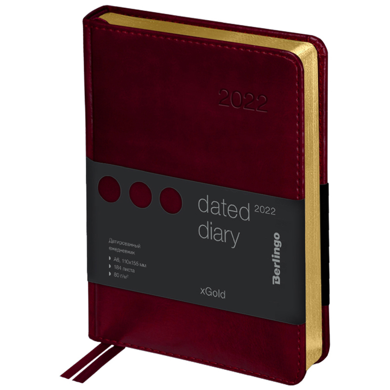 Ежедневник датированный 2022г., А6, 184л., кожзам, Berlingo 'xGold', зол. срез, бордовый