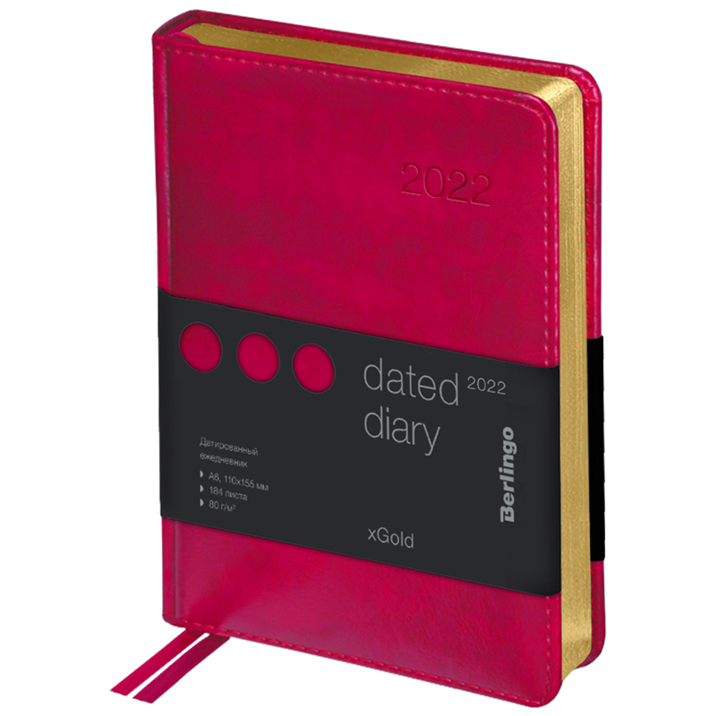 Ежедневник датированный 2022г., А6, 184л., кожзам, Berlingo 'xGold', зол. срез, фуксия