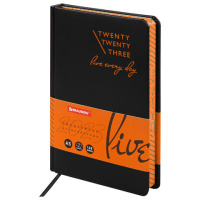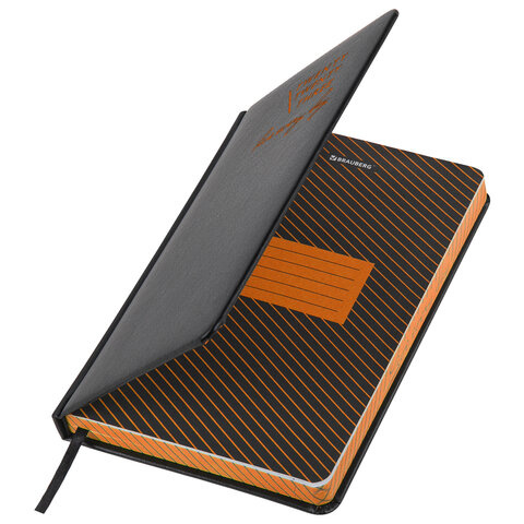 Ежедневник датированный 2023 А5 138x213 мм BRAUBERG 'Chameleon', под кожу, черный/оранжевый, 114108