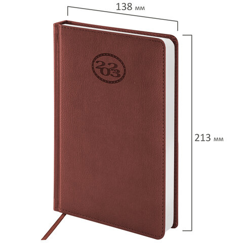Ежедневник датированный 2023 А5 138x213 мм BRAUBERG 'Favorite', под кожу, коричневый, 114004