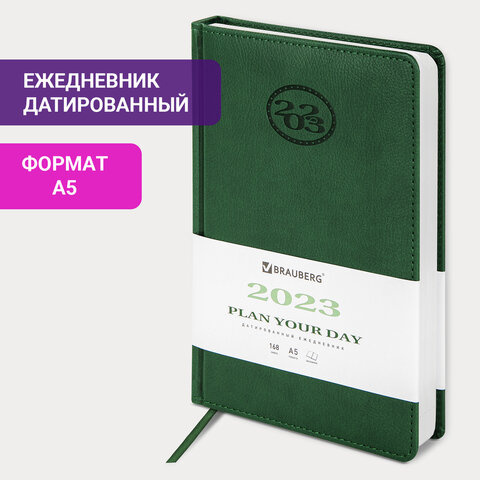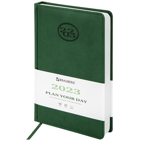 Ежедневник датированный 2023 А5 138x213 мм BRAUBERG 'Favorite', под кожу, зеленый, 114007