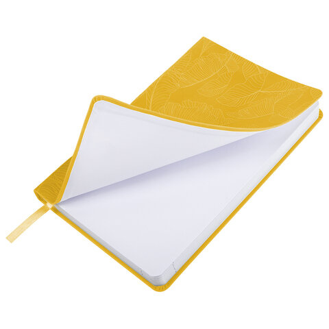 Внутренний блок включает 168 листов белой бумаги плотностью 70 г/м2. Каждая страничка имеет перфорированный угол. Благодаря стандартному формату А5 (138х213 мм) датированный ежедневник удобно использовать как в офисе, так и на выездных деловых встречах. Мягкая (интегральная) обложка по-летнему яркого желтого цвета под гладкую кожу имеет декоративное тиснение, что придает ежедневнику особый шарм. Материал обложки подходит для горячего тиснения. Дополнением является закладка-ляссе, с помощью которой при необходимости можно быстро открыть ежедневник на нужной странице. Помимо прочего, ежедневник снабжен обширным справочным материалом.