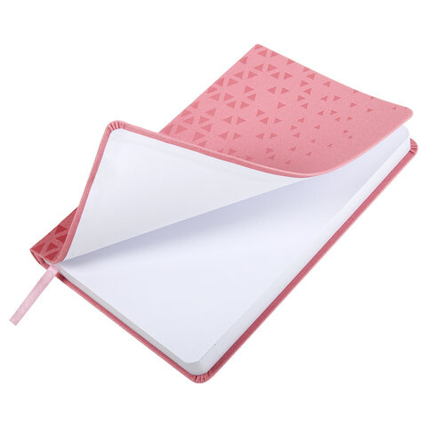 Внутренний блок включает 168 листов белой бумаги плотностью 70 г/м2. Каждая страничка имеет перфорированный угол. Благодаря стандартному формату А5 (138х213 мм) датированный ежедневник удобно использовать как в офисе, так и на выездных деловых встречах. Мягкая (интегральная) обложка, под фактурную кожу розового цвета с легким блеском имеет декоративное тиснение, что придает ежедневнику особый шарм. Материал обложки подходит для горячего тиснения. Дополнением является закладка-ляссе, с помощью которой при необходимости можно быстро открыть ежедневник на нужной странице. Помимо прочего, ежедневник снабжен обширным справочным материалом.