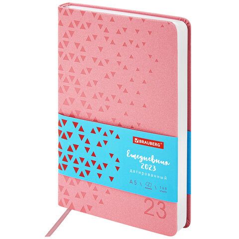 Ежедневник датированный 2023 А5 138x213 мм BRAUBERG 'Glance', под кожу, розовый, 114097
