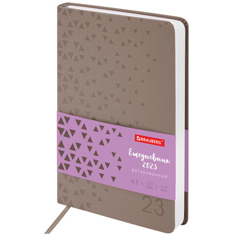 Ежедневник датированный 2023 А5 138x213 мм BRAUBERG 'Glance', под кожу, серый, 114098
