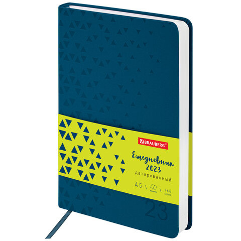 Ежедневник датированный 2023 А5 138x213 мм BRAUBERG 'Glance', под кожу, синий, 114096