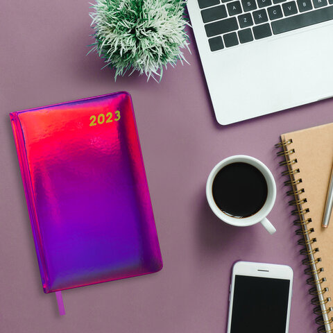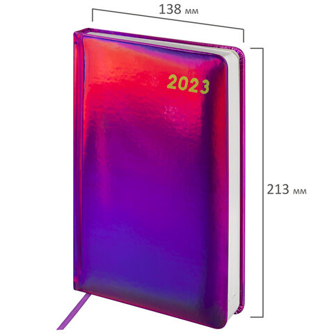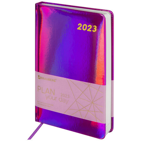 Ежедневник датированный 2023 А5 138x213 мм BRAUBERG 'Holiday', под кожу, 'зеркальный', фиолетовый, 1