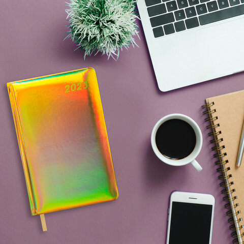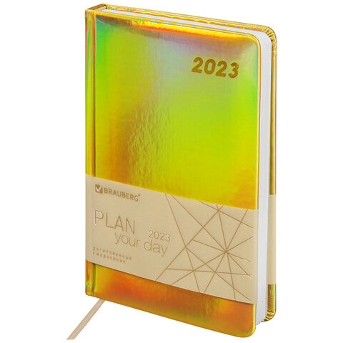Ежедневник датированный 2023 А5 138x213 мм BRAUBERG 'Holiday', под кожу, 'зеркальный', золотой, 1140