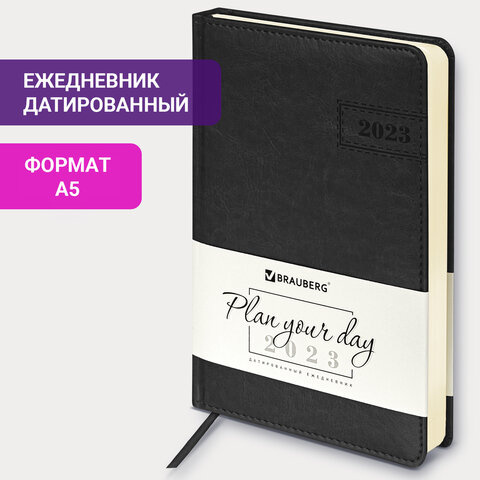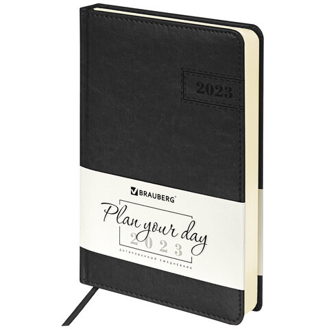 Ежедневник датированный 2023 А5 138x213 мм BRAUBERG 'Imperial', под кожу, черный, 114036