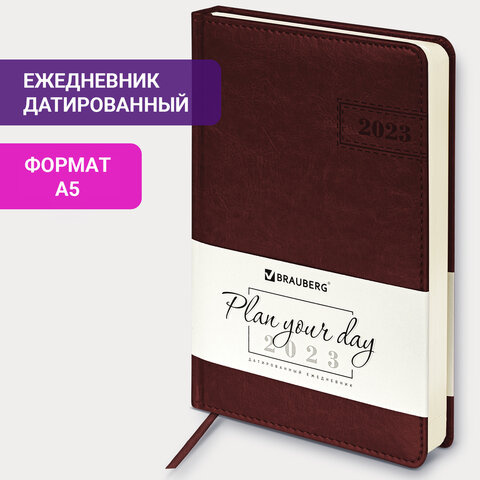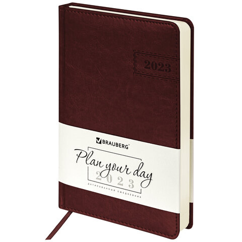 Ежедневник датированный 2023 А5 138x213 мм BRAUBERG 'Imperial', под кожу, коричневый, 114034