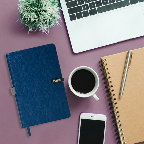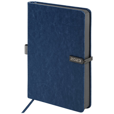 Ежедневник датированный 2023 А5 138x213 мм BRAUBERG 'Inspiration', цветной срез, синий, 114160
