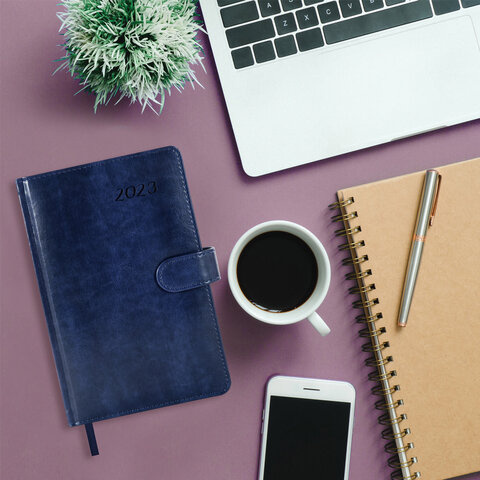 Ежедневник датированный 2023 А5 138x213 мм BRAUBERG 'Legend', под кожу, синий, 114040