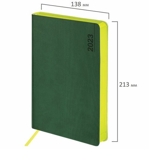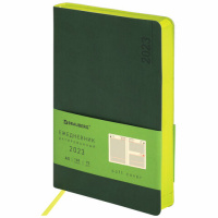 Ежедневник датированный 2023 А5 138x213 мм BRAUBERG 'Metropolis Mix', под кожу, темно-зеленый, 11411