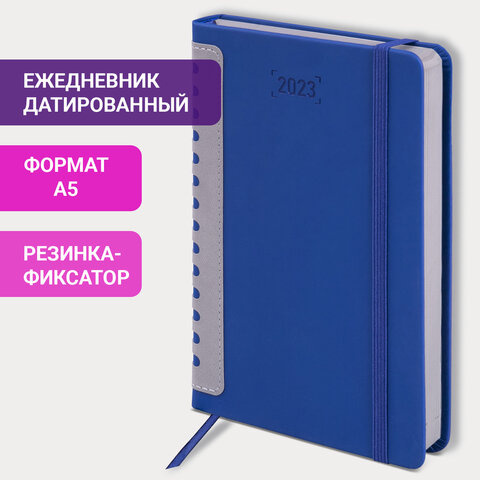 Ежедневник датированный 2023 А5 138x213 мм BRAUBERG 'Original', под кожу, темно-синий/серый, 114122