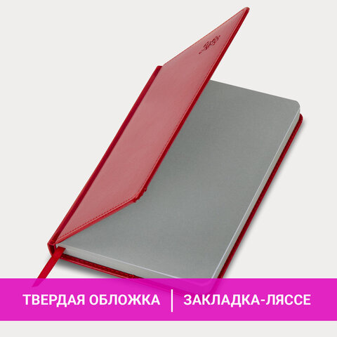 Внутренний блок включает 168 листов белой бумаги плотностью 70 г/м2. Каждая страничка имеет перфорированный угол. Благодаря стандартному формату А5 (138х213 мм) ежедневник удобно использовать как в офисе, так и на выездных деловых встречах. Твердая обложка стилизована под гладкую кожу. Подходит для горячего тиснения. Срез и форзац ежедневника окрашены на контрасте с цветом обложки, что придает ему особый шарм. Дополнением является закладка-ляссе, с помощью которой при необходимости можно быстро открыть ежедневник на нужной странице. Помимо прочего, ежедневник снабжен обширным справочным материалом.