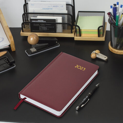 Ежедневник датированный 2023 А5 138x213 мм BRAUBERG 'Select', балакрон, бордовый, 114058