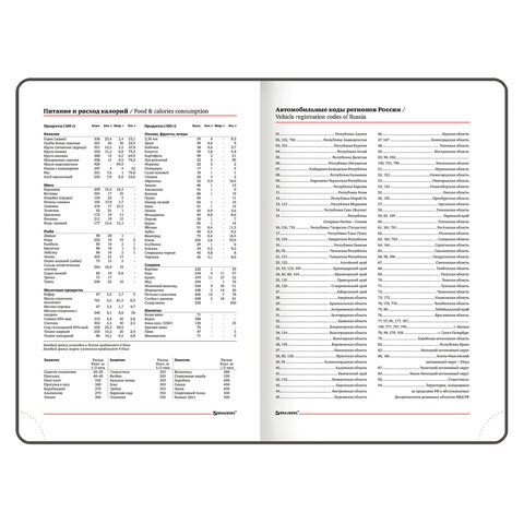 Внутренний блок включает 168 листов белой бумаги плотностью 70 г/м2. Каждая страничка имеет перфорированный угол. Благодаря стандартному формату А5 (138х213 мм) ежедневник удобно использовать как в офисе, так и на выездных деловых встречах. Жесткая книжная обложка, с легкой рельефной фактурой, напоминает натуральную кожу благородного бордового цвета. Материал обложки - балакрон, подходит для тиснения только фольгой. Форзац ежедневника представлен картами мира и России. Дополнением является закладка-ляссе, с помощью которой при необходимости можно быстро открыть ежедневник на нужной странице. Помимо прочего, ежедневник снабжен обширным справочным материалом.