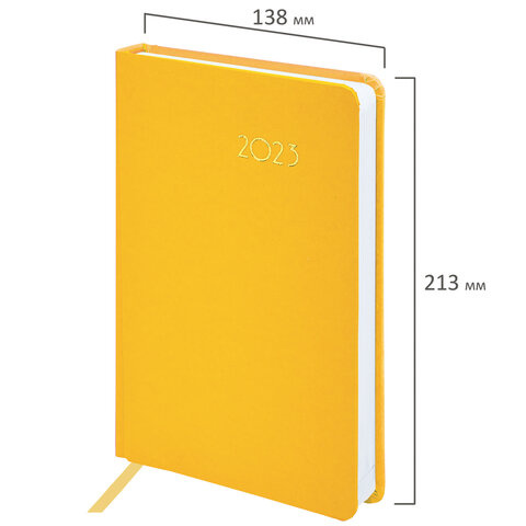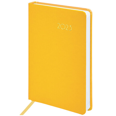 Ежедневник датированный 2023 А5 138x213 мм BRAUBERG 'Select', балакрон, желтый, 114060