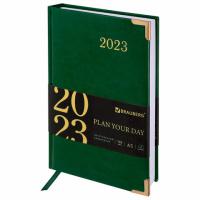 Ежедневник датированный 2023 А5 138x213 мм BRAUBERG 'Senator', под кожу, зеленый, 114064