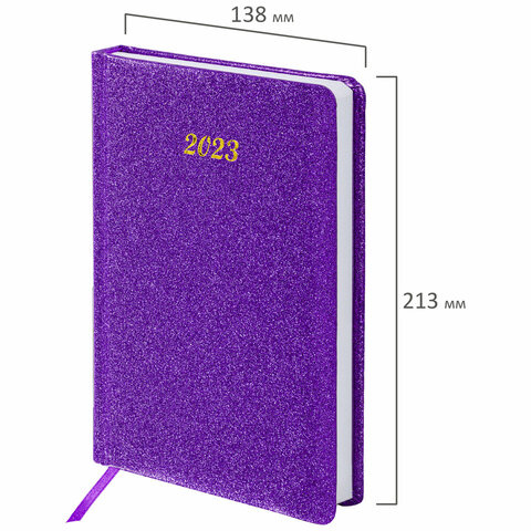 Ежедневник датированный 2023 А5 138x213 мм BRAUBERG 'Sparkle', под кожу, блестки, фиолетовый, 114112