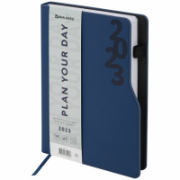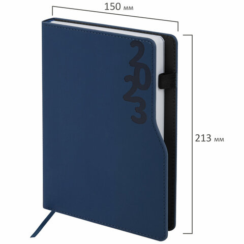 Ежедневник датированный 2023 А5 138x213 мм BRAUBERG 'Up', под кожу софт-тач, синий, 114087
