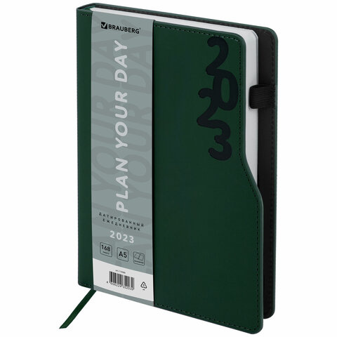 Ежедневник датированный 2023 А5 138x213 мм BRAUBERG 'Up', под кожу софт-тач, зеленый, 114086