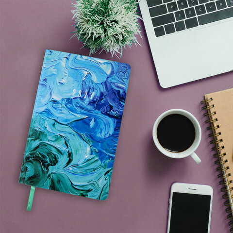 Ежедневник датированный 2023 А5 138x213 мм BRAUBERG 'Vista', под кожу, гибкий, 'Blur', 114125