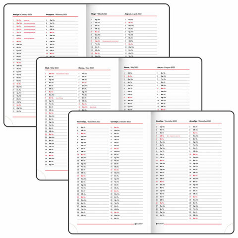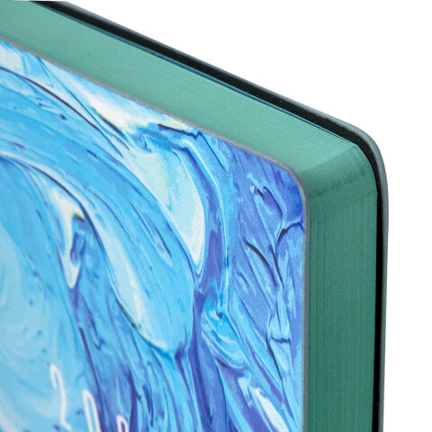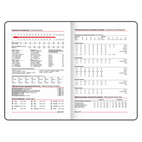 Внутренний блок включает 168 листов белой бумаги плотностью 70 г/м2. Каждая страничка имеет перфорированный угол. Благодаря стандартному формату А5 (138х213 мм) ежедневник удобно использовать как в офисе, так и на выездных деловых встречах. Мягкая интегральная обложка стилизована под гладкую кожу и имеет яркий дизайнерский принт. Материал обложки подходит для горячего тиснения. Цветной форзац и срез придает ежедневнику особый шарм. Дополнением является закладка-ляссе, с помощью которой при необходимости можно быстро открыть ежедневник на нужной странице. Помимо прочего, ежедневник снабжен обширным справочным материалом.