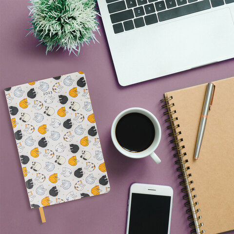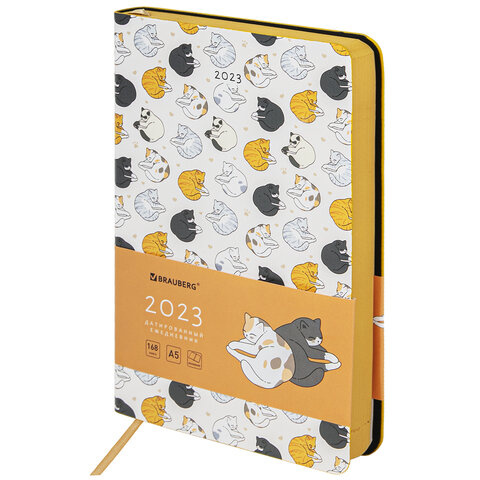 Ежедневник датированный 2023 А5 138x213 мм BRAUBERG 'Vista', под кожу, гибкий, 'Cuties', 114128