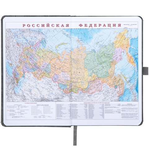 Внутренний блок включает 168 листов белой бумаги плотностью 70 г/м2. Каждая страничка имеет перфорированный угол. Благодаря стандартному формату А5 (138х213 мм) ежедневник удобно использовать как в офисе, так и на выездных деловых встречах. Твердая обложка стилизована под благородное дерево и выполнена в стильном сером цвете. Подходит для горячего тиснения. Снабжен резинкой-фиксатором, благодаря чему ежедневник не откроется в сумке или портфеле. Дополнением является закладка-ляссе, с помощью которой при необходимости можно быстро открыть ежедневник на нужной странице и держатель для ручки. Помимо прочего, ежедневник снабжен справочным материалом.