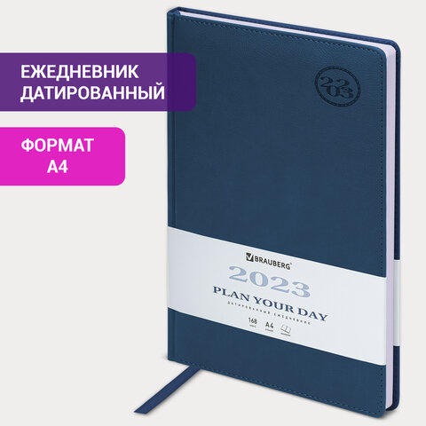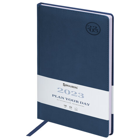 Ежедневник датированный 2023 БОЛЬШОЙ ФОРМАТ 210х297 мм А4, BRAUBERG 'Favorite', синий, 113908