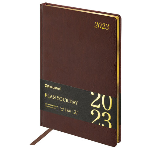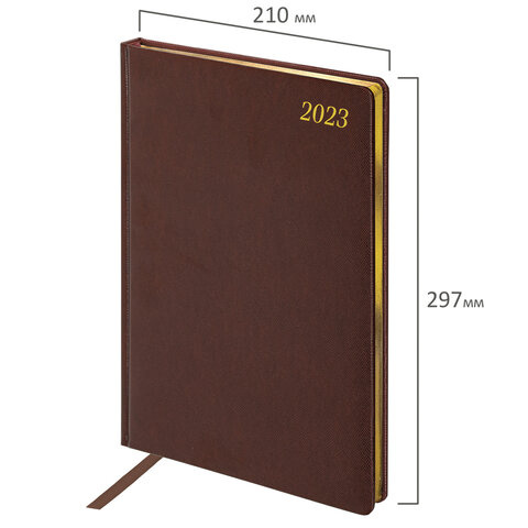 Ежедневник датированный 2023 БОЛЬШОЙ ФОРМАТ 210х297 мм А4, BRAUBERG 'Iguana', коричневый, 113910