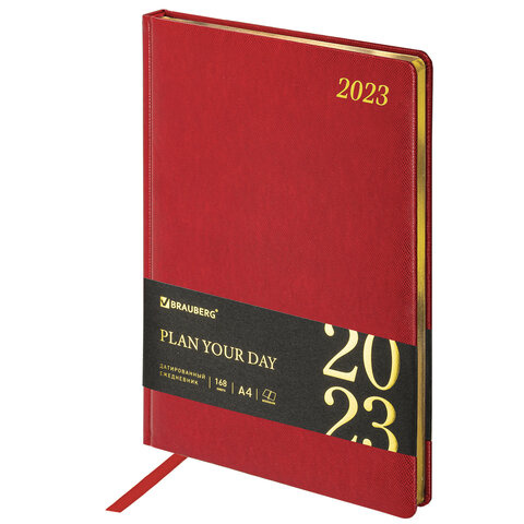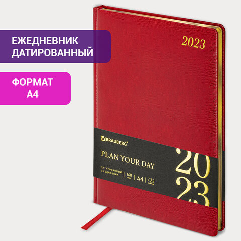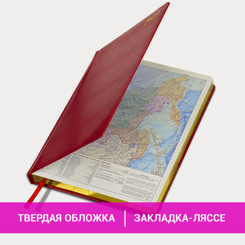 Ежедневник датированный 2023 БОЛЬШОЙ ФОРМАТ 210х297 мм А4, BRAUBERG 'Iguana', красный, 113912