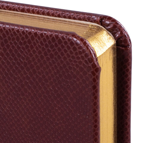 Внутренний блок включает 168 листов тонированной бумаги плотностью 70 г/м2. Каждая страничка имеет перфорированный угол. Благодаря малому формату А6 (100х150 мм) ежедневник удобно использовать как в офисе, так и на выездных деловых встречах. Твердая обложка стилизована под кожу рептилии классического коричневого цвета. Подходит для горячего тиснения. Срез ежедневника фольгирован золотой фольгой, что придает ему особый шарм. Дополнением является закладка-ляссе, с помощью которой при необходимости можно быстро открыть ежедневник на нужной странице. Помимо прочего, ежедневник снабжен обширным справочным материалом.
