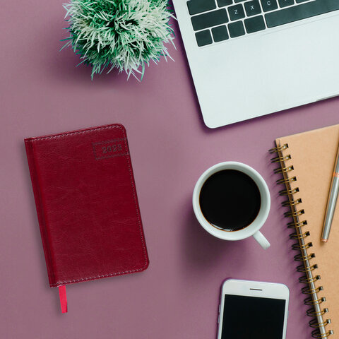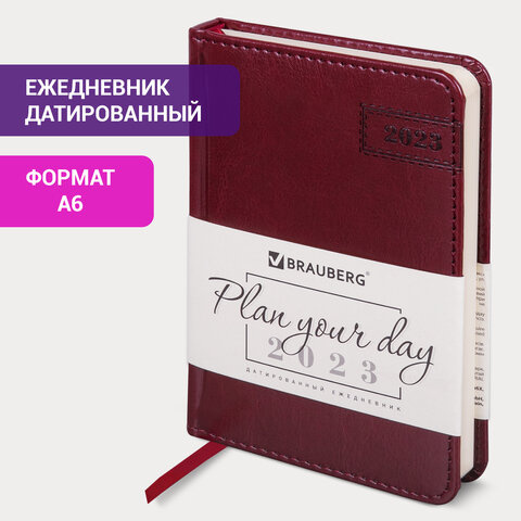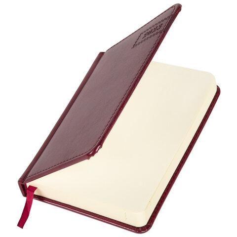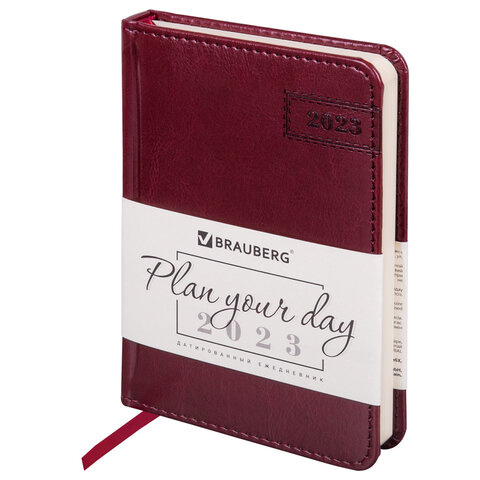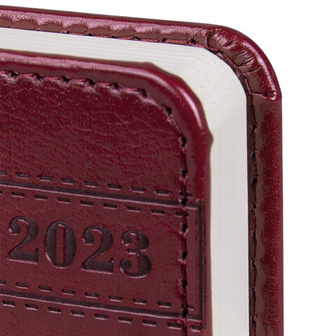 Ежедневник датированный 2023 МАЛЫЙ ФОРМАТ 100х150 мм А6, BRAUBERG 'Imperial', под кожу, бордовый, 11